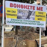 «Στους δρόμους» οι πυρόπληκτοι ελαιοπαραγωγοί των περιοχών της Μάκρης