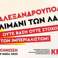 Με σύνθημα «Αλεξανδρούπολη λιμάνι των λαών! Ούτε βάση, ούτε στόχος των ιμπεριαλιστών!», οι Οργανώσεις Σπουδάζουσας Ανατολικής Μακεδονίας - Θράκης, Κεντρικής Μακεδονίας και Δυτικής Μακεδονίας της ΚΝΕ πραγματοποιούν κατασκήνωση την Παρασκευή 27, το Σάββατο 28 και την Κυριακή 29 Μάη...
