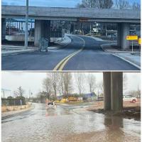 Με την πρώτη βροχή πλημμύρισε ο δρόμος στην νέα αερογέφυρα της Παλαγίας