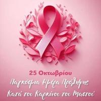 Η 25η Οκτωβρίου είναι η Παγκόσμια Ημέρα κατά του Καρκίνου του Μαστού, ενώ όλος ο μήνας Οκτώβριος έχει καθιερωθεί ως μήνας πρόληψης και ενημέρωσης για τη νόσο. Στόχος είναι η ευαισθητοποίηση για την πρόληψη, την έγκαιρη διάγνωση και θεραπεία. Ο...